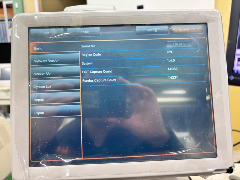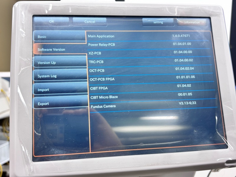 OCT fundus tomographic images and color/red-free (digital) fundus images can be taken with one unit. Auto-alignment allows for easy and speedy imaging. Basic analysis applications are included, which are useful for diagnosing glaucoma and macular diseases. (Normative database included) Equipped with a touch panel display and a GUI design optimized for the workflow used, allowing for easy imaging. The display can be flexibly rotated, allowing imaging operations to be performed from various positions and providing better support to patients during imaging. It also provides greater freedom in installation location.