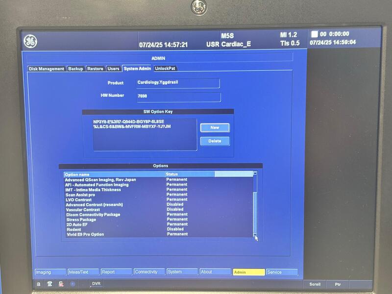 *YOM2014 Option: *TEE *Quantitative Analysis Package *Tissue Tracking *Mpegview and evalue *Advanced Qscan Imaging Rev Japan *AFI *IMT *Scan Analysist *LVO contrast *Dicom Connectivity Package *Stress Package *2D Auto EF *Vivid E9 Pro Option