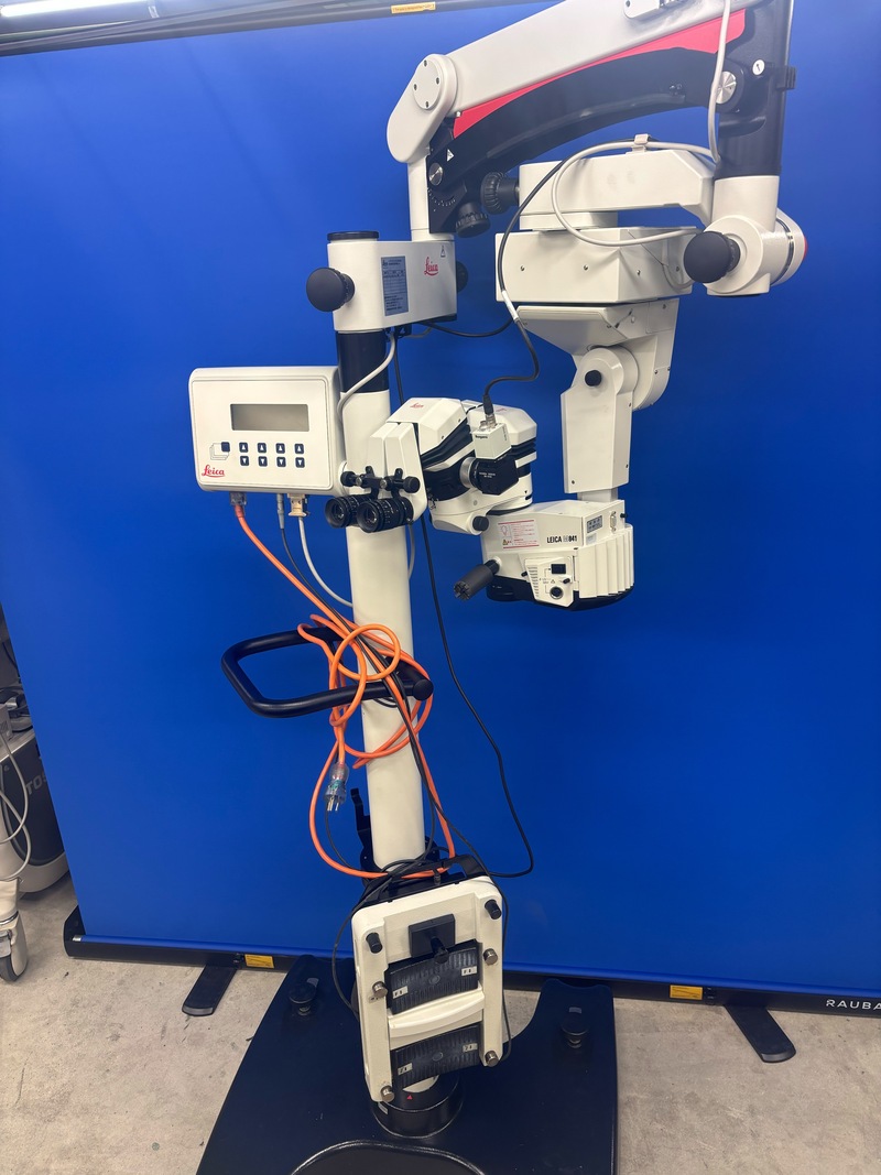 The Leica M840 and M841 surgical microscopes are the full ophthalmic suite successor to the heralded Leica M690 ophthalmic surgical microscope. The M840 and M841 both have tremendous visual acuity and reliable red-reflex, enhanced with the Leica otto-flex technology, Opti-Chrome design, Quad-Zoom stereo illumination, and Apochromatic lenses.
