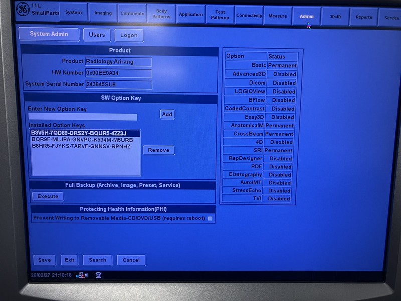 *Option Enabled: *CW Doppler *Basic *Cross Beam *SRI *Sector Probe