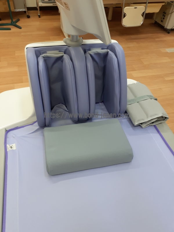 ベッドに横になる際、足部エアバッグに足を入れることで、初めての患者様にも寝る位置がわかりやすい親切設計になっています。