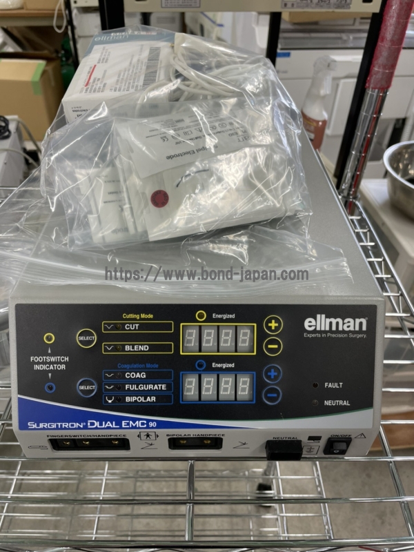 3ツボタン式手元スイッチで切開・混合・凝固の3モードを切り替えて使い分けると共に、足元では適時フットスイッチを踏んでバイポーラ出力ができる4モード切替ができます。