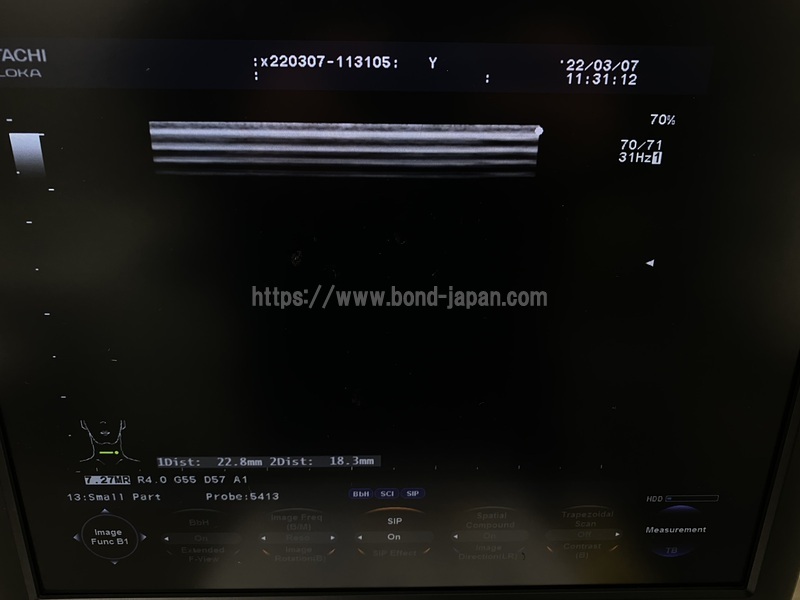 表示モード  *Bモード *Mモード *カラードプラ *PWドプラ *CWドプラ *パワードプラ *ティッシュドプラ *外形寸法 550(W) x 700(D) x 1230~1430(H)mm *重量 約70Kg
