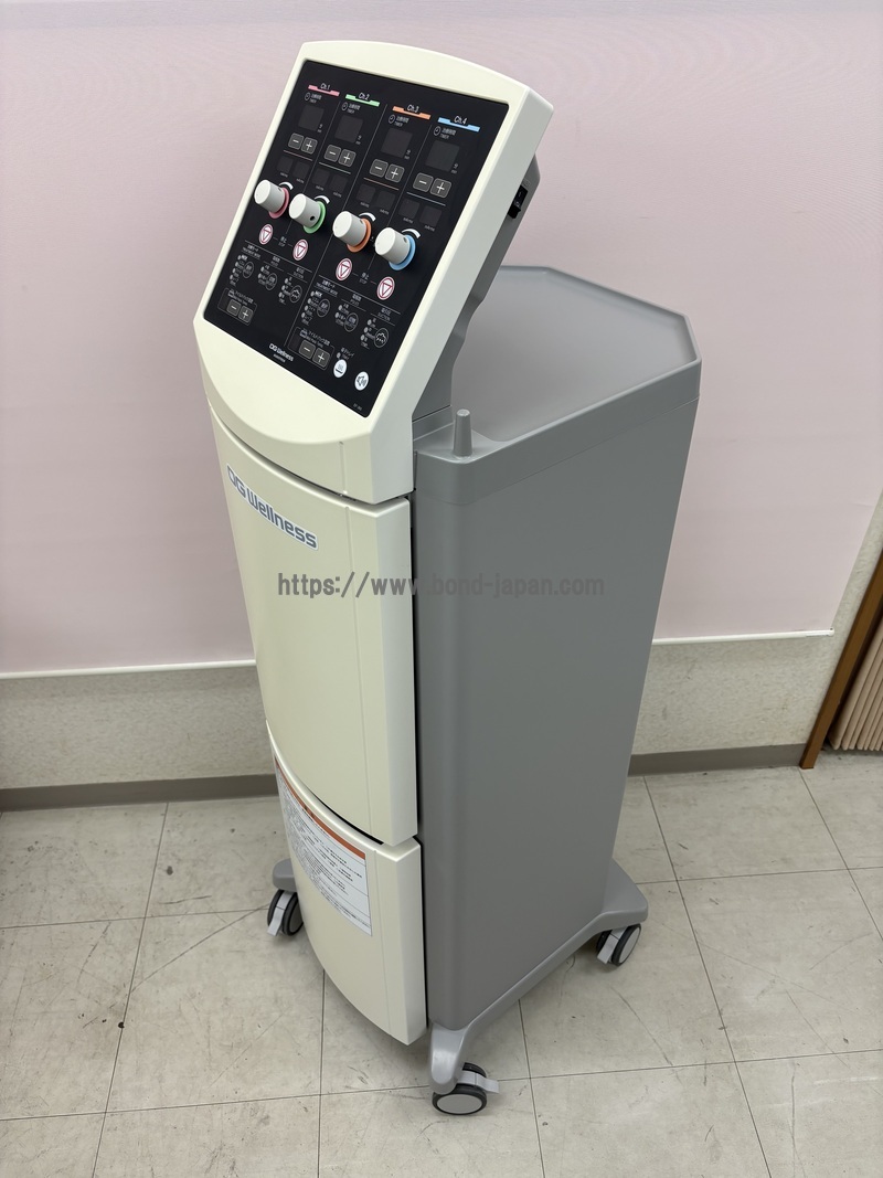 出力波形 正弦波 基本周波数 2140~2500Hz、4640~5000Hz 外形寸法 440(W)×450(D)×1250(H)mm 安全装置 過電流保護回路、出力ゼロ位置開始保護 最大出力電圧 75Vrms(10kΩ負荷時) 最大出力電流 50mArms(500Ω負荷時) 治療モード MIX、リズム、ワイド、ムーブ 治療周波数 0~360Hz 質量 34kg 電極数 4極、8極 電源 AC100V 50 / 60Hz 電源入力 320VA