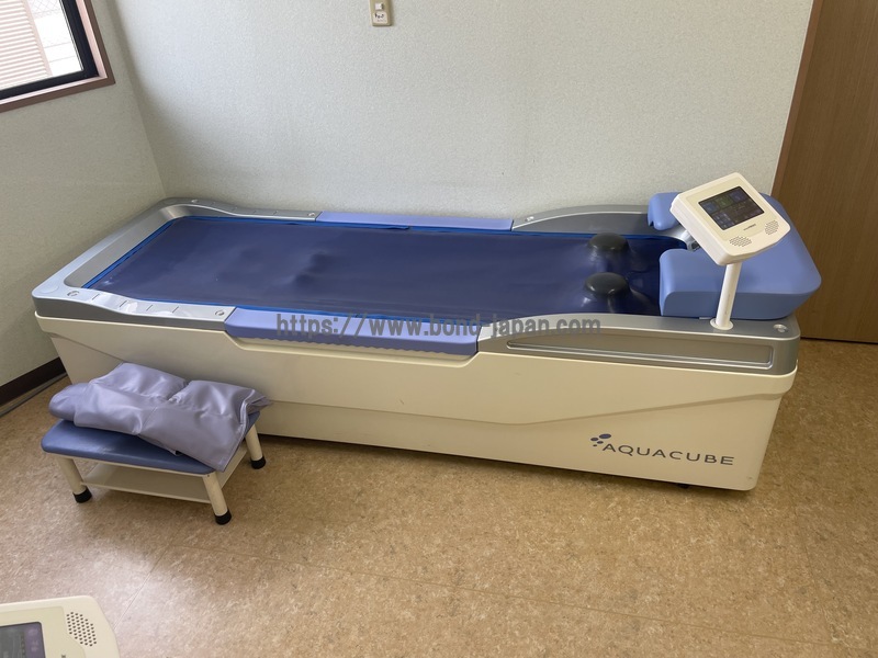 販売名 3Dウォーターマッサージベッド アクアキューブ 電源電圧 AC200V 単相 50/60Hz / AC200V 三相 50/60Hz 消費電力 単相 4.5kVA / 三相 4.2kVA 寸法(mm) 2,330L×840W×950H ※ただし乗込部高さ510mm 質量 260kg(注水時490kg) 水量 230リットル 一般的名称 ベッド型マッサージ器(JMDNコード:70620000) 認証番号 227AIBZX00032000(単相)、 227AIBZX00033000(三相) クラス分類 管理医療機器 特定保守管理医療機器(修理区分6) 電撃保護形式 クラスⅠ機器(永久設置形機器)、B 形装着部を持つ機器