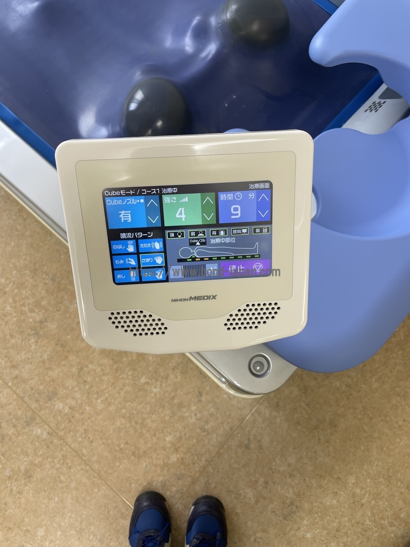 2本のCubeノズルとそれ以外の4本、計6本のノズルの組合せにより刺激範囲を変化させながら全身を移動させ、今までにない変化に富んだ刺激を体感できます。 「もみ」「たたき」「ほぐし」「さすり」「のばし」「おし」の6種類の手技に見立てた水圧刺激をより効果的にそして心地よく体感して頂けるように、ノズルの改良、スピードの強弱、吹き出し間欠の割合などの改良を行い、治療プログラムであるキューブモード(8種類)と従来のノーマルモード(8種類)と計16種類の治療モードを完成させました